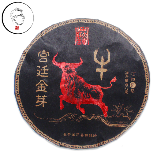 Пуэр Шу "Красный бык" фаб. Синь Вень блин 357 гр / Китайский классический чёрный чай шу пуэр / Сырье Гунтин