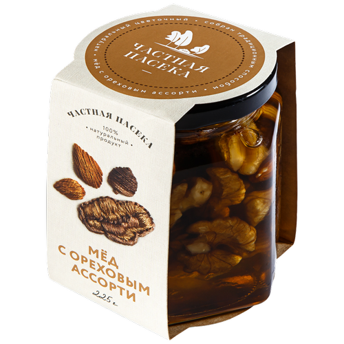 Мед "Частная пасека"с ореховым ассорти стекло 225г
