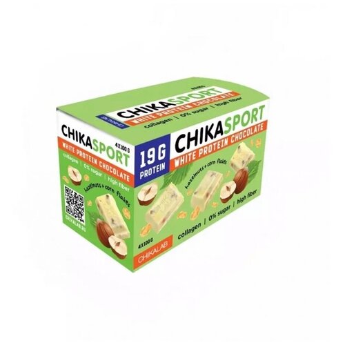 Chikalab Белый шоколад с фундуком и кукурузными чипсами 100гр. 4 шт.