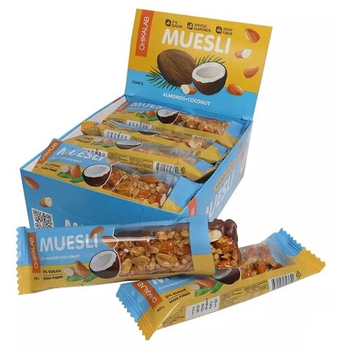 CHIKALAB Мюсли батончик 40г (20шт коробка) (Миндальный с кокосом)