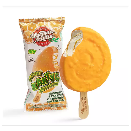 Чистая Линия мороженое Пломбир в глазури с взрывной карамелью «Апельсиновый кактус», 80г