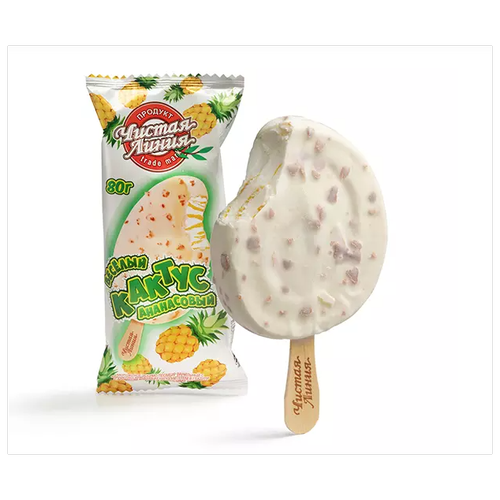 Чистая Линия мороженое Пломбир с ананасом в глазури «Ананасовый кактус», 80г
