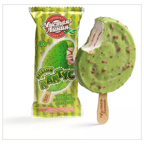 Чистая Линия мороженое Пломбир с клубникой в глазури «Кактус», 80г