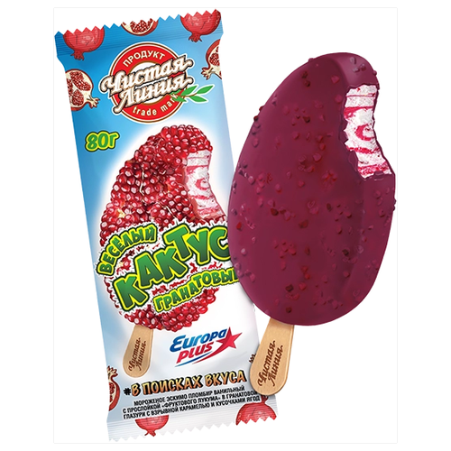 Чистая Линия мороженое Пломбир в глазури с взрывной карамелью «Гранатовый кактус», 80г