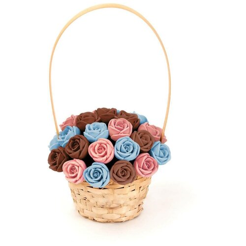 33 шоколадные розы CHOCO STORY в корзинке — Голубой, Розовый и Коричневый Бельгийский шоколад, 396 гр. K33-GRSH