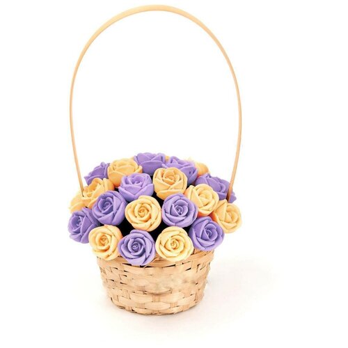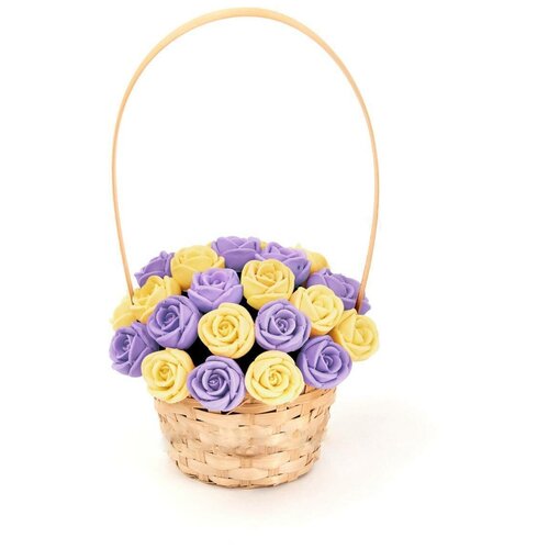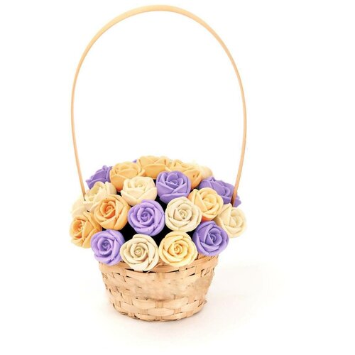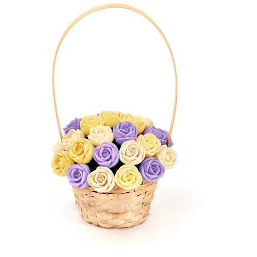 33 шоколадные розы CHOCO STORY в корзинке — Белый, Желтый и Фиолетовый микс из Бельгийского шоколада, 396 гр. K33-BJF