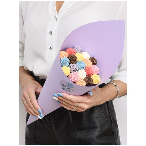19 шоколадных роз в букете от CHOCO STORY-Сладкий разноцветный микс в яркой упаковке