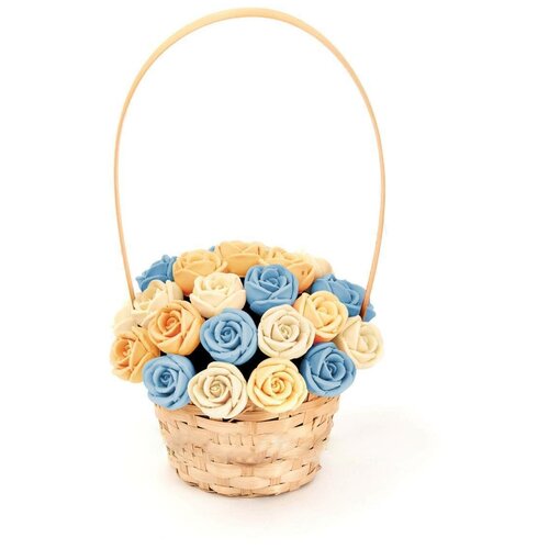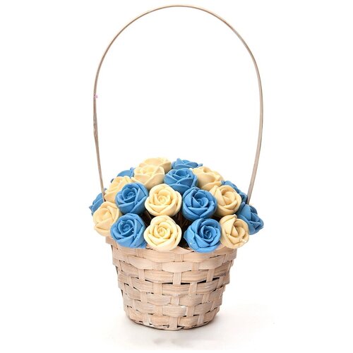 33 шоколадные розы CHOCO STORY в корзинке — Белый и Голубой микс из Бельгийского шоколада, 396 гр. K33-BG
