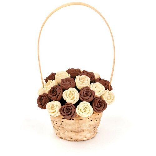 33 шоколадные розы CHOCO STORY в корзинке — Белый и Коричневый Бельгийский шоколад, 396 гр. K33-BSH