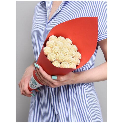 Розы в форме шоколада в Красном Букете — 19 шт. CHOCO STORY: Белый Бельгийский шоколад, 228 гр., B19-K-B