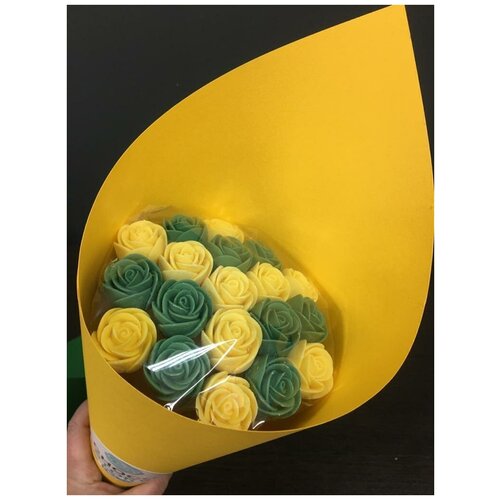 Подарочный набор конфет: Шоколадный букет из 19 роз CHOCO STORY, в Желтой подарочной обертке: Желтый и Зеленый Бельгийский шоколад, 228 гр. B19-J-JZ