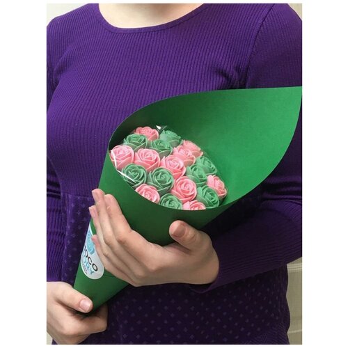 Подарочный набор конфет: Шоколадный букет из 19 роз CHOCO STORY, в Зеленой подарочной обертке: Розовый и Зеленый Бельгийский шоколад, 228 гр. B19-Z-RZ