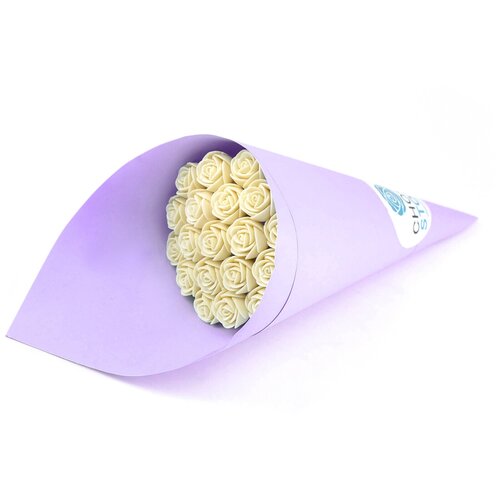 Шоколадный букет из 19 розочек CHOCO STORY, в Сиреневой подарочной бумаге: Белый Бельгийский шоколад, 228 гр., B19-C-B