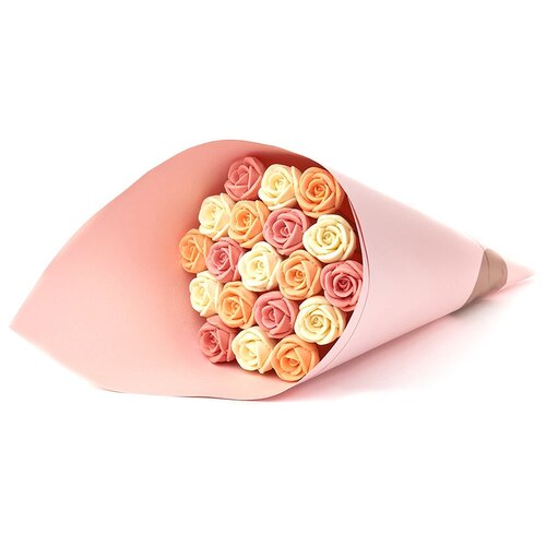 Шоколадный букет из 19 розочек CHOCO STORY, в розовой подарочной бумаге — Белый, оранжевый и Розовый Бельгийский шоколад, 228 гр. B19-R-BOR