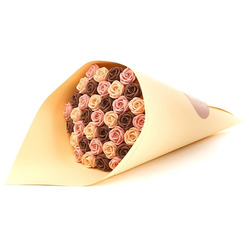 Шоколадный букет из 37 розочек CHOCO STORY, в Пчелиной подарочной обертке: Розовый, Шоколадный и Оранжевый микс Бельгийского шоколада, 444 гр., B37-J-RSHO
