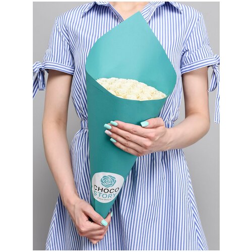 Шоколадный букет из 37 розочек CHOCO STORY, в подарочной бумаге цвета Аквамарин: Белый Бельгийский шоколад, 444 гр. B37-A-B