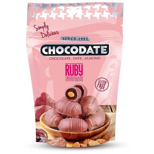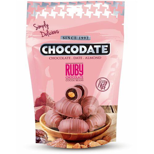 «Chocodate» Финики с миндалем в рубиновом шоколаде 100 гр. (12)