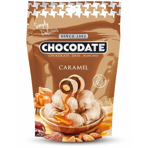 Финики с миндалем и карамелью в сочетании белого и молочного шоколада «Chocodate» 100 грамм