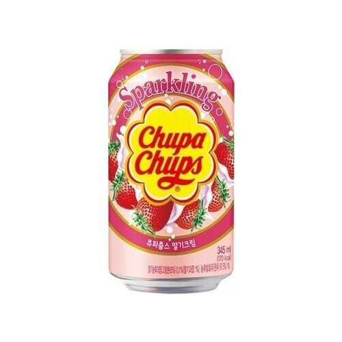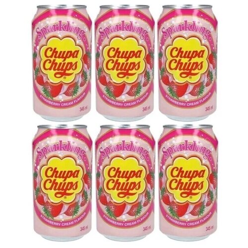 Газированный напиток Chupa Chups Strawberry Cream (Чупа Чупс Клубника со сливками) / 6 банок по 345 мл.