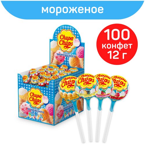 Карамель Chupa Chups со вкусом мороженого, 100шт. по 12г.