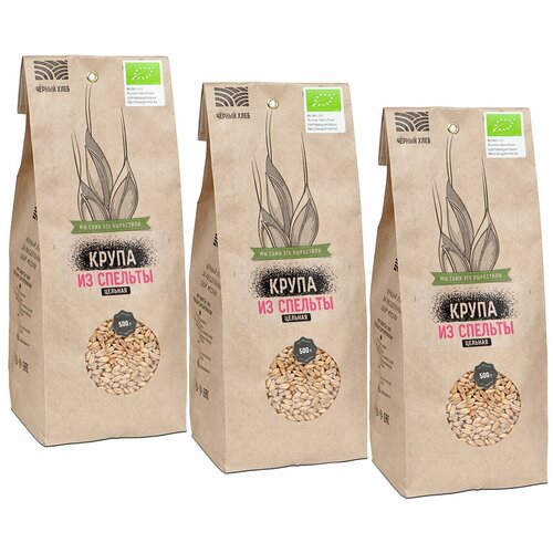 Крупа из спельты Чёрный хлеб цельная органическая, 3 пакета по 500 г