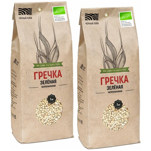 Гречка зелёная Чёрный хлеб органическая, 2 пакета по 1 кг