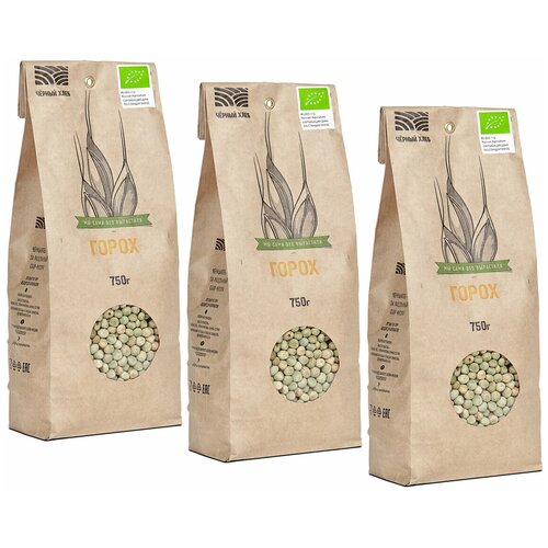 Горох для проращивания Чёрный хлеб цельный органический, 3 пакета по 750 г