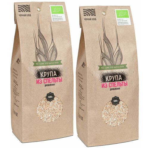 Крупа из спельты Чёрный хлеб дроблёная органическая, 2 пакета по 500 г