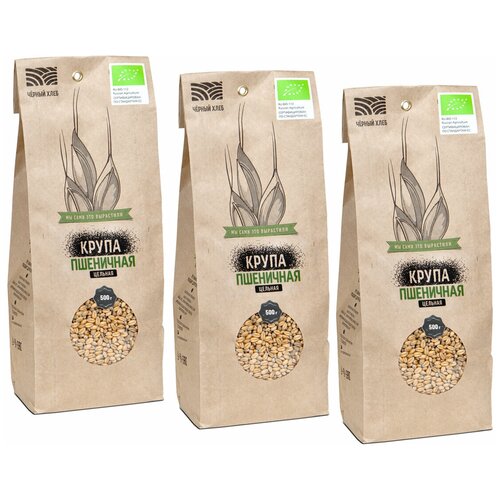 Крупа пшеничная Чёрный хлеб цельная органическая, 3 пакета по 500 г