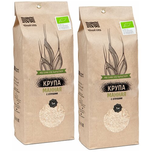 Крупа манная Чёрный хлеб с отрубями органическая, 2 пакета по 1 кг