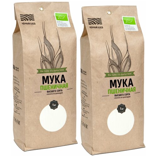 Мука пшеничная Чёрный хлеб хлебопекарная высшего сорта органическая, 2 пакета по 1 кг
