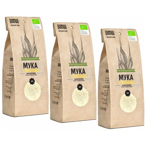 Мука гороховая Чёрный хлеб цельнозерновая органическая, 3 пакета по 500 г