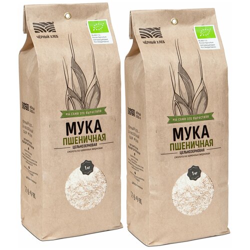 Мука пшеничная Чёрный хлеб цельнозерновая органическая, 2 пакета по 1 кг