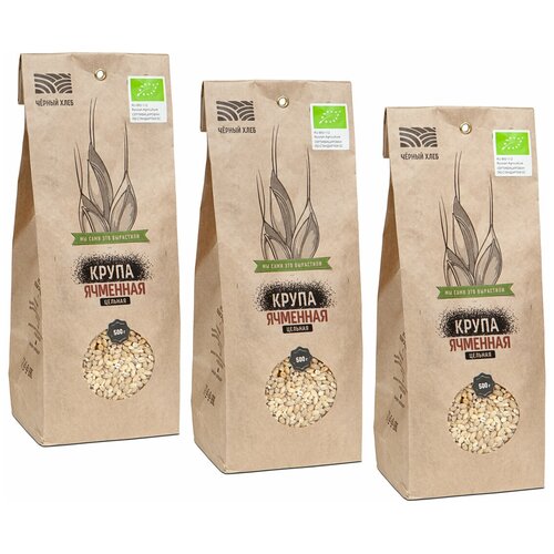 Крупа ячменная Чёрный хлеб цельная органическая, 3 пакета по 500 г