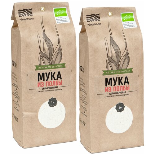 Мука из полбы Чёрный хлеб цельнозерновая органическая, 2 пакета по 1 кг