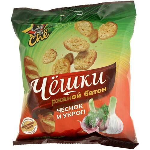 Сухарики «Чёшки ржаной батон» со вкусом молодого чеснока с укропчеком, 60г