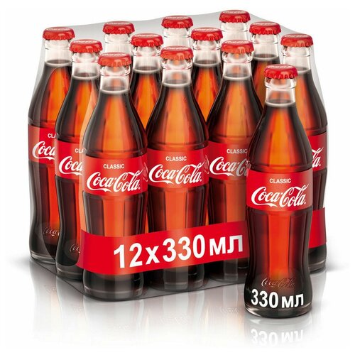 Coca Cola Classic, 0.33 л, 15 шт, бутылка, стекло, Кока Кола, Классик, 0,33 л, газированный напиток, упаковка, Грузия, стеклянная