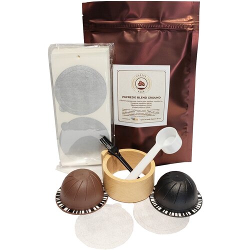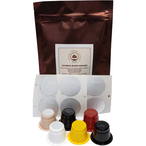 Самоклеящиеся крышки из фольги для капсул Nespresso Vertuo 59 мм — 50 шт, держатель для капсул Nespresso Vertuo — 1 шт , кофе молотый 50 гр.
