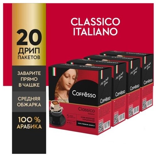 Молотый кофе Coffesso Classico Italiano, в дрип-пакетах, 20уп по 9 грамм