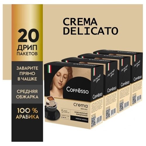 Молотый кофе Coffesso Crema Delicato, в дрип-пакетах, 20уп по 9 грамм