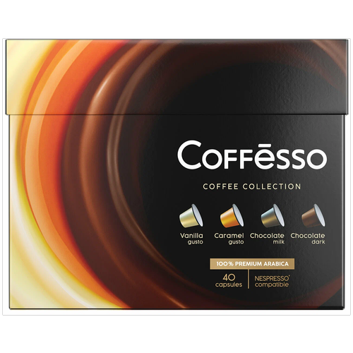 Кофе в капсулах COFFESSO Ассорти в капсулах 4 вкуса по 10 шт (Ваниль, Карамель, Молочный и Горький шоколад)
