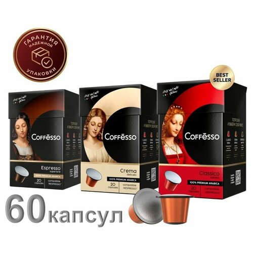 Кофе в капсулах Coffesso набор из 3х вкусов, 60 шт.