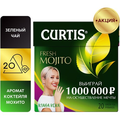 Чай Curtis "Fresh Mojito", зелёный ароматизированный, 20 пирамидок