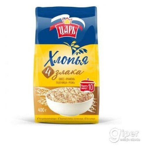 Хлопья из 4-х злаков 400гр м/у Царь 12шт
