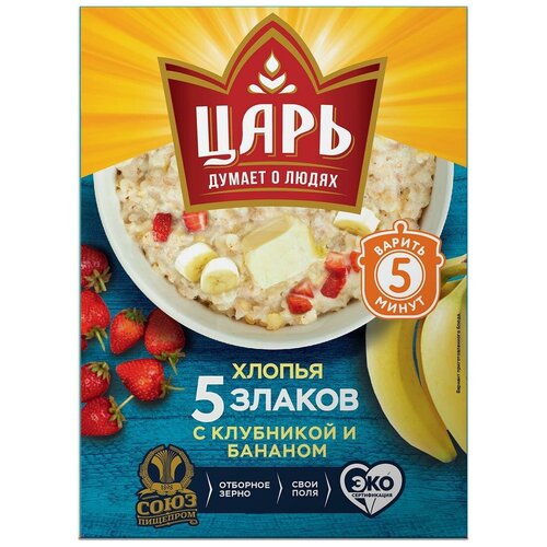 Хлопья 5 злаков с клубникой и бананом "Царь" 400гр.