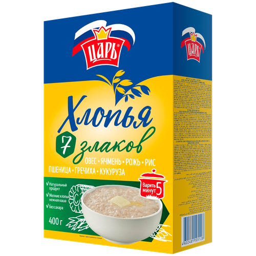 Хлопья из 7-х злаков "Царь" 400гр. Быстрого приготовления.
