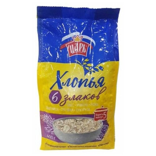 Хлопья из 6-х злаков "Царь" 400гр. х5шт. Быстрого приготовления.
