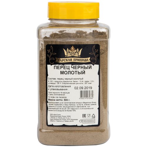 Перец Приправа перец черный молотый Царская приправа, ПЭТ банка, 500г, 910689