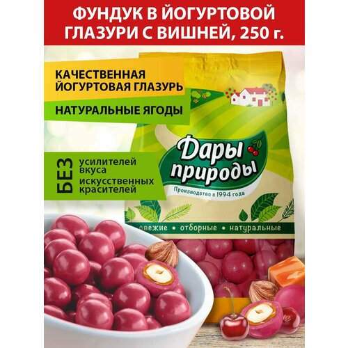 Конфеты драже Дары Природы с орехом фундук в соленой карамели, йогуртовой глазури с вишней, 250 г