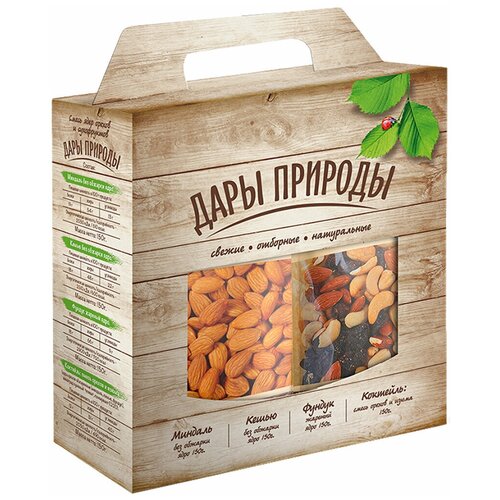Набор орехов и коктейлей в подарочной коробке, подарочный набор, новый год, день рождения "Дары природы" 600гр.